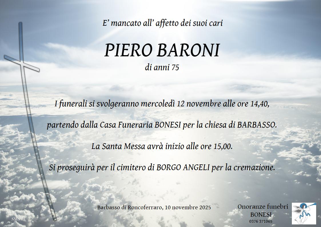 I funerali si svolgeranno mercoledì 12 novembre alle ore 14,40,partendo dalla Casa Funeraria BONESI per