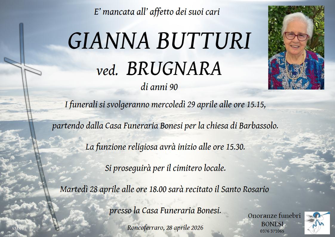 I funerali si svolgeranno mercoledì 7 gennaio alle ore 14.30, partendo dalla Casa Funeraria Bonesi,