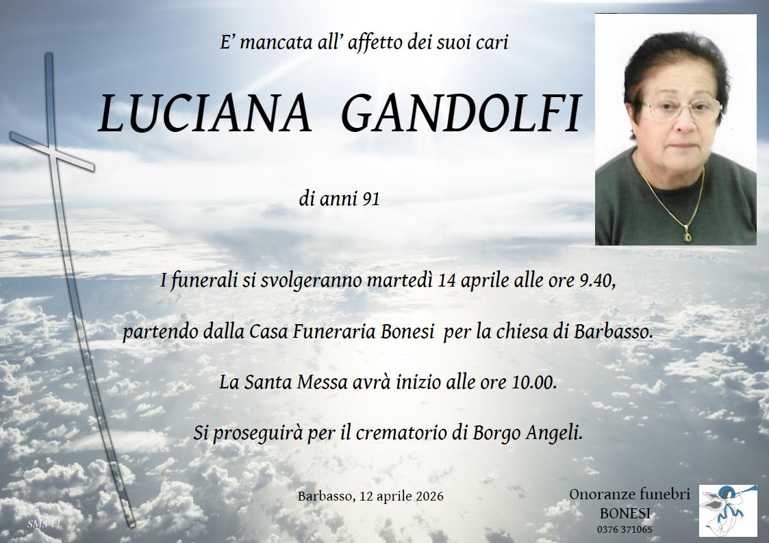 I funerali si svolgeranno martedì 14 aprile alle ore 9.40, partendo dalla Casa Funeraria Bonesi